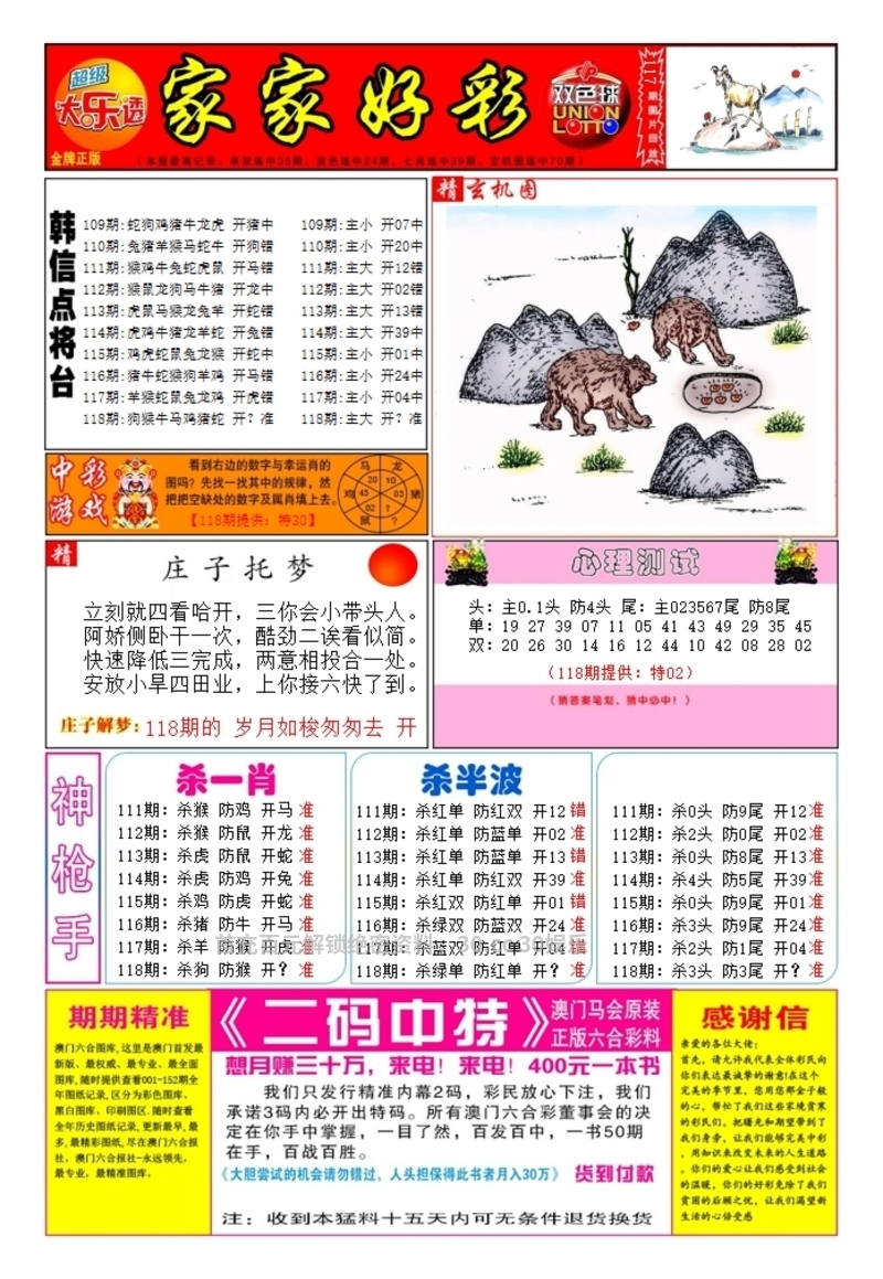 | 118期:吉美凶丑『凶丑』开:猪31准 |